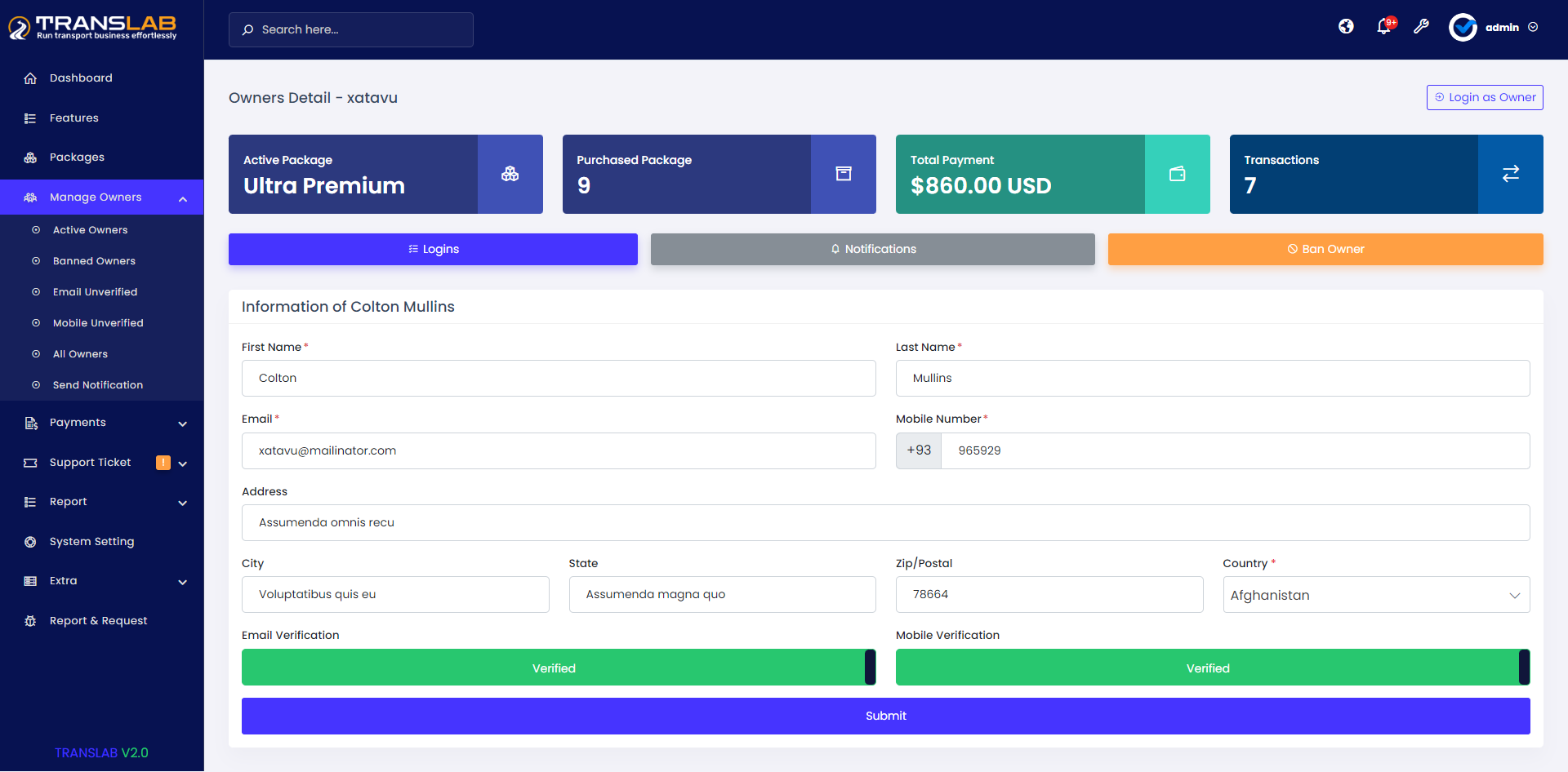 TransLab es una aplicación de gestión de transporte basada en Marca blanca que simplifica la gestión de diversas flotas de vehículos. Diseñada para propietarios de empresas de transporte, TransLab permite una supervisión eficiente de vehículos, personal, rutas, paradas, flotas, viajes, precios de billetes y reservas de billetes. Como solución SaaS, el superadministrador tiene el control total, creando paquetes personalizables y vendiendo estos planes a empresas de transporte. Esta configuración flexible permite a los propietarios de empresas de transporte acceder a una solución robusta e integral para sus necesidades operativas, al tiempo que se benefician de las capacidades de gestión optimizadas de TransLab.